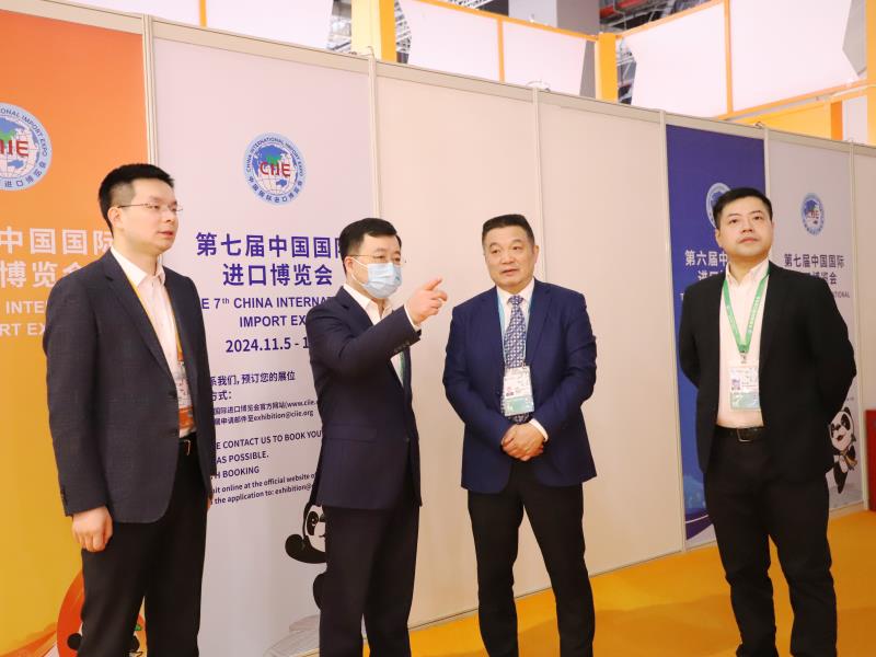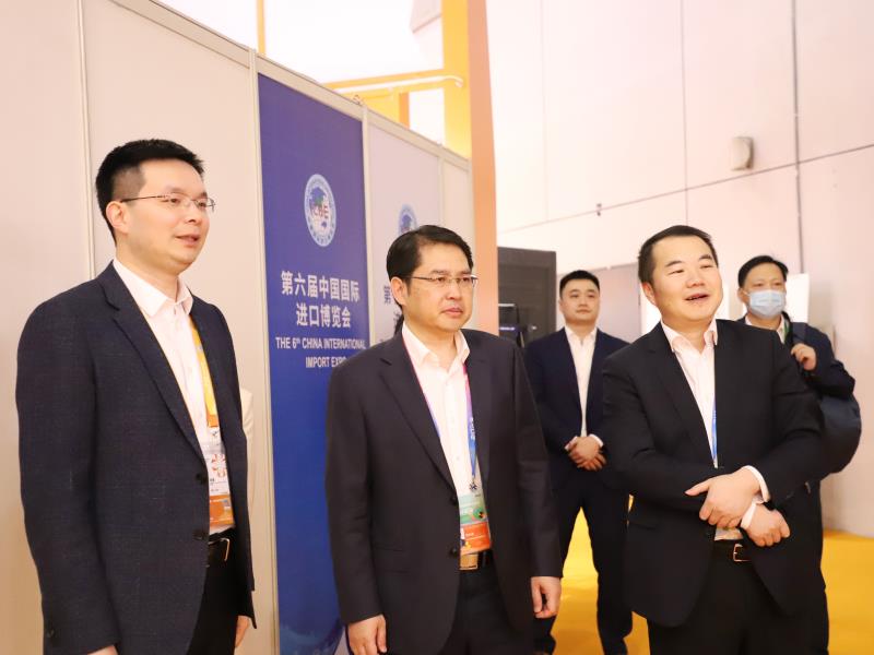 進博會期間,省國資委副主任、黨委委員李秀斌,省國資委二級巡視員劉偉,蘇豪控股集團黨委委員、副總裁李明、晉永甫、蔣成效先后到展位視察調研、見證簽約、看望現場工作人員。李秀斌在參觀展位、聽取公司經營情況介紹后,對江蘇外貿公司近年來主營品種的供應鏈體系建設表示肯定,并提出了“聚焦主業、精耕細作、防住風險”的工作要求。