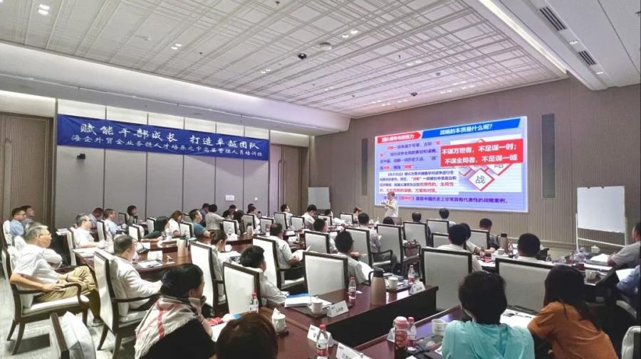 為貫徹公司“十四五”全業(yè)務(wù)鏈人才培養(yǎng)發(fā)展規(guī)劃,全面加強人才隊伍建設(shè),把“人才強企”落到實處,幫助中層管理者樹立良好的角色認知與定位,提高領(lǐng)導(dǎo)力水平,外貿(mào)公司于7月22-23日組織開展了“賦能干部成長 打造卓越團隊”海企外貿(mào)全業(yè)務(wù)鏈人才培養(yǎng)之中高層管理人員培訓(xùn)班,公司領(lǐng)導(dǎo)班子成員、二級部經(jīng)理助理以上中高層管理人員共40余人參加培訓(xùn)。