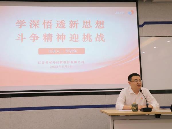 為推動學習貫徹習近平新時代中國特色社會主義思想主題教育走深走實,外貿公司黨總支書記、董事長、總經理李居強以《學深悟透新思想 斗爭精神迎挑戰》為題講授黨課,深學細研《習近平著作選讀》。公司全體黨員、中層及以上領導干部、發展對象及積極分子共71人參加學習。